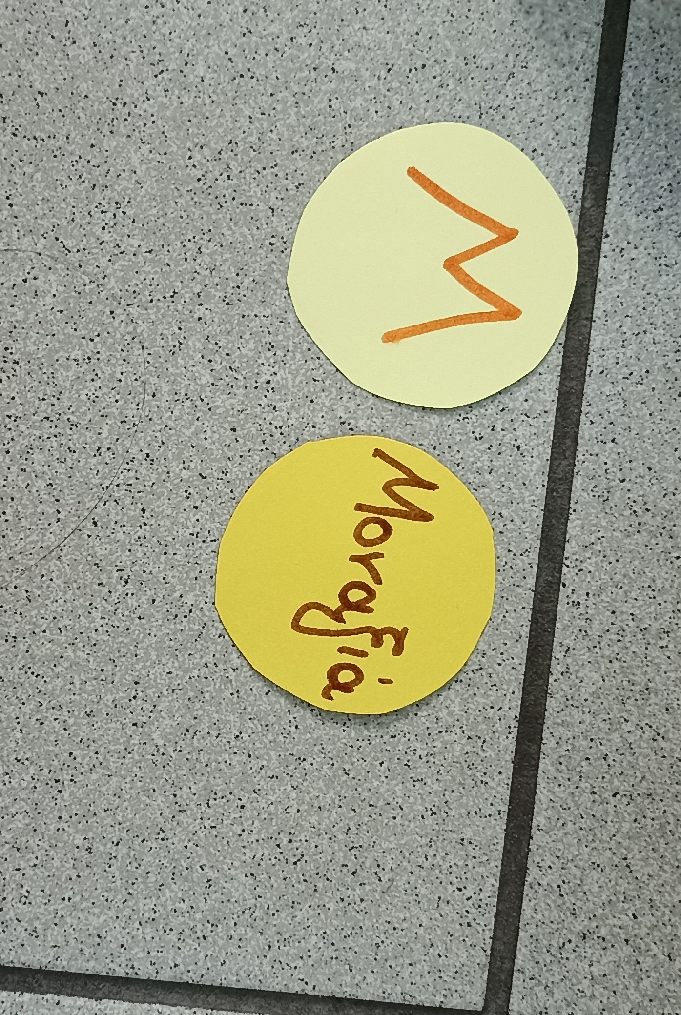 Φτιάχνουμε καρτέλες με τα συναισθήματα και τα αρχικά τους. Σκορπάμε τα αρχικά στο πάτωμα και ζητάμε από